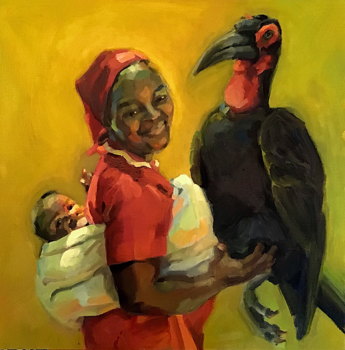 This work from Africa does not depict suffering but premises a symbolic realm where the longing for wholeness, even perhaps with things antithetical, can be real. Simple fictions of accompaniment in day work and day dreams—playful, mysterious, absurd, violent—inhabit vulnerable and indeterminate spaces. Text from apartheid and other documents haunts and complicates an easy relationship with the imagery. Some of these dreams recapture symbolic power through proximity and painterly integration, while others express remorse and wrong. Through the technique of disruptive realism, they provide a longed-for connection with things distant, lost or removed. They each allow the viewer to perhaps question the impossible, to perhaps feel interdependence, and to perhaps participate in healing.